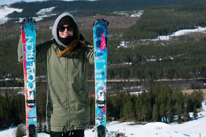 Coalition Snow team rider Sandra Dejin with a pair of their skis. Photo: Coalition Snow