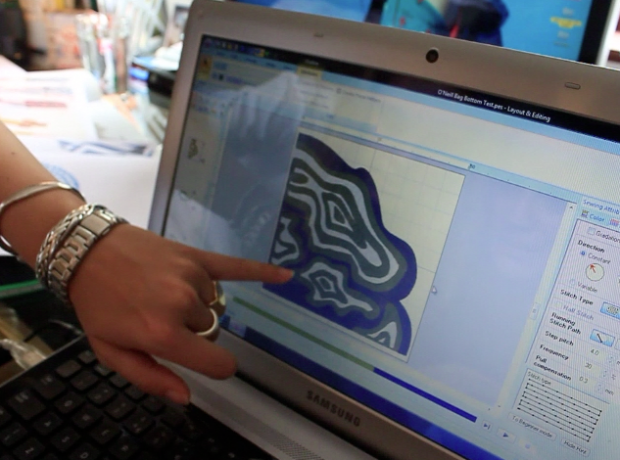 This week has been really really exciting, we’ve been working on our embroidery machine all day everyday testing and retesting for our latest O’Neill project. Customisation is key so after receiving one of O’Neill’s aptly named Coastline Sport bags it’s been all sketching, colouring, digitising, dismantling and re-building, and to be honest it’s all got a little out of hand. Here’s a sneak peek of where we’re taking it. Memphis, stripes and print print print!