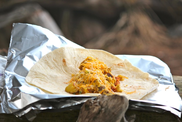 But if you’re looking to make your breakfast in advance, this recipe for sausage and potato burritos, toasted over the campfire, looks great.