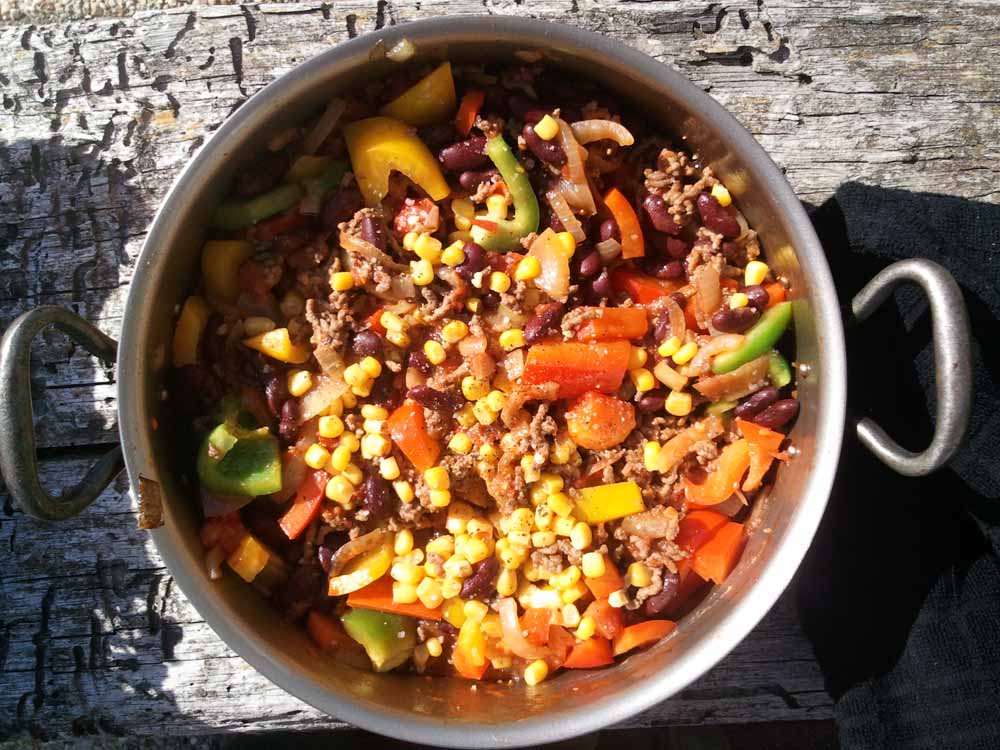 When you’ve only got one pan (or more importantly, one camping stove) then you need a pretty simple dinnertime recipe.