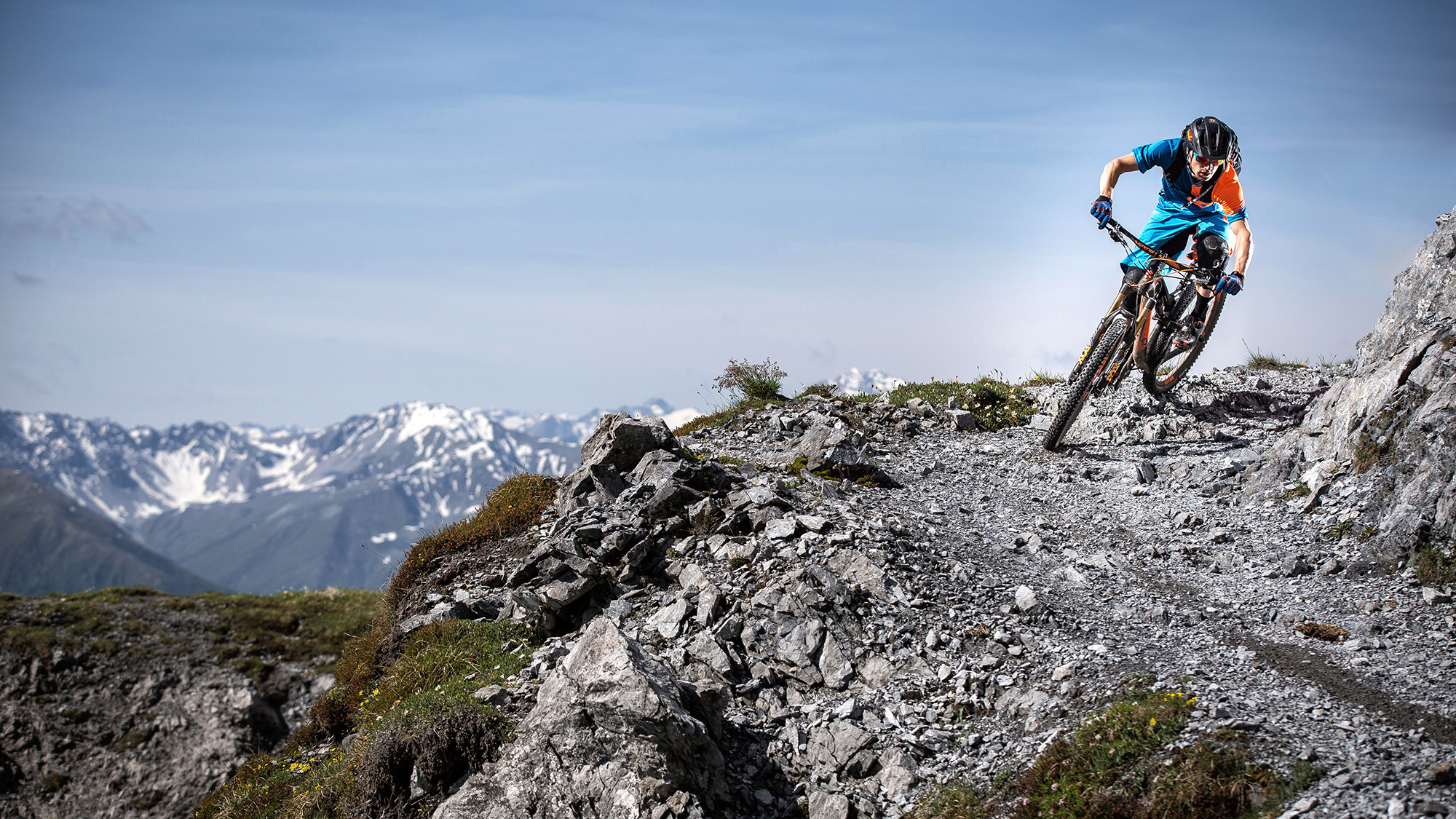 This is high Alpine riding at its finest as rocky trails cut through meadows, along ridgelines and down steep rooty forests. It feels totally unspoilt and the trails at the top were deserted when we rode them so early in the season. A highlight comes along at the Rinerhorn ridgeline overlooking Davos itself, hucking in off the fireroad, it’s a battle to kill speed through zig-zagging corners before dropping into wide open forest trails with a hopscotch of roots to pick lines through.