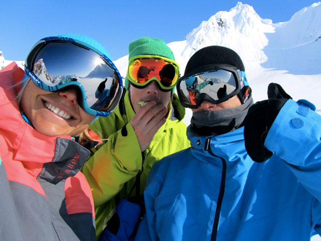 After a long month of march sunny and après ski tanning temperatures I was so excited about going to AK with exciting terrain and perfect snow. Plus the crew was epic: Xavier and Victor Delerue, Mathieu Crepel, Fredi Kalbermatten and myself – French party trip to Haines! The last time I was in Haines we saw the sky twice in a whole month, well this year it’s been pretty much the opposite. I’ve seen nothing but sunshine and blue sky. As weird as it sounds it felt a bit like summer camp!