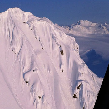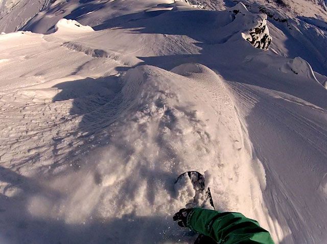 White Alaska turned into blue Alaska, I mean usually the weather is white and you are seeking for the sun window and that means the snow is insane! And when the sun’s out everyday that means you can fly everyday, but like anywhere else it also means the snow is suffering from it. So instead of seeking for the sun you end up seeking for some good snow high up above glacier terrain. Some days were tricky as snow was windblown or sun crusted. Some faces were epic, but not approachable with the heli for drops up top. Some lines looked so sweet but ended in the scariest glacier mouths, but in the end one good face makes up for it all straight away. On the last couple days, that one face, that last face that had been left behind by other crews before us, ended up being my favorite of our time there. The 3 of us got a couple sweet lines on it and the snow was pretty descent. I mean it wasn’t pow but looked alright on film and more importantly felt quite fun underneath the board. Plus the glacier mouths were big enough to give you a bit of excitement when you got over it but not big enough so that you wouldn’t make it !