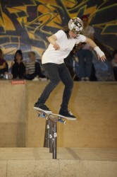 Helen Lovelee’s bag of tricks included a backside 5.0, long 5050’s and frontside lipslide. Emily Russell pulled off front and back tailslides, blunt to pivot and a back disaster to smith. Helena Long had a whole host of crazy drop-ins up her sleeve – some looking suspiciously similar to star jumps. She also got blunt fakie, back smiths and halfcab boardslides. Unfortunately work beckoned and Helena had to leave before the Sponsored section began.