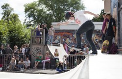 After the heavy showers in the morning, the weather proceeded to get better and better and sunshine was in full swing by the time the miniramp comp began.