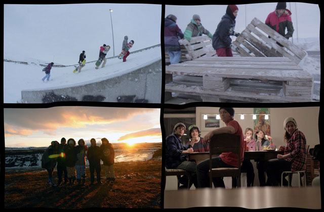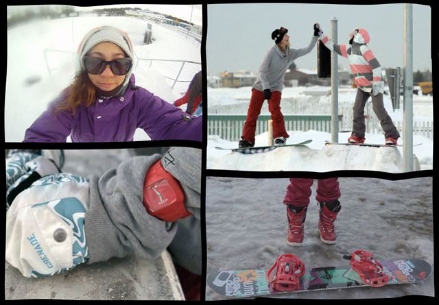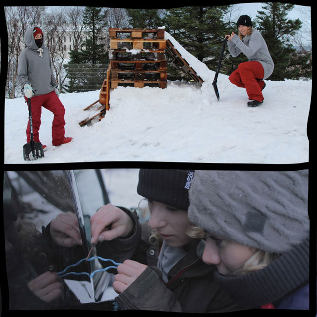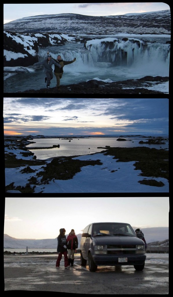 After Reykjavik we headed north to Akureyri in search of more snow but all that awaited us was ice. I’m usually very confident walking anywhere but there I was falling off my feet at least three times every day. At one point we even considered re-booking our flights and going back home but that night we were awarded with the craziest polar lights and we realized that even if we couldn’t ride, we could enjoy everything around us. We visited the big waterfalls, national park, walked through lava fields and even found hot springs. Finally after a few days we were awarded with fresh snow and we continued riding. Again people were so kind to even help us build spots with their machines and absolutely approved what we were doing, probably because of the Helgassons, since it’s their home town and people are no strangers to snowboarders.