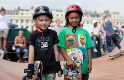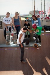 Part of the focus of the event was for Lucy to encourage younger riders to get involved. Two local young girls – Kiki and Tamsin – initially were a little nervous about riding the ramp especially with such a big crowd looking on.However after watching the older girls throwing down trick after trick they became more than keen to have a go.