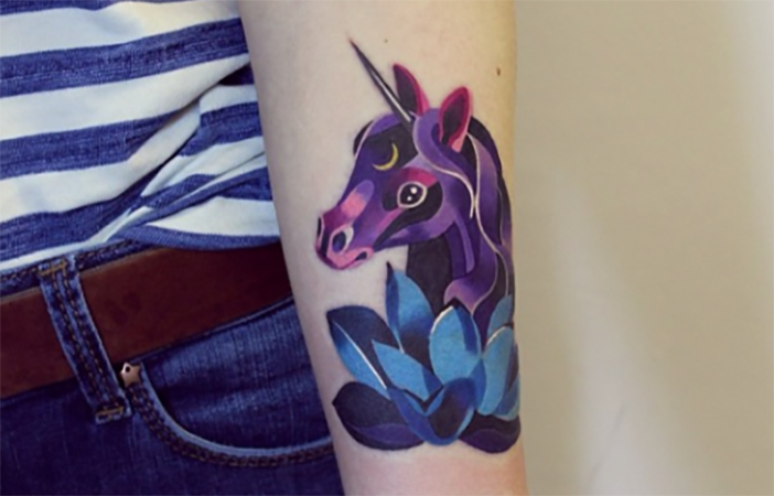 These super colourful geometric watercolour tattoos are unique and so, so gorgeous.