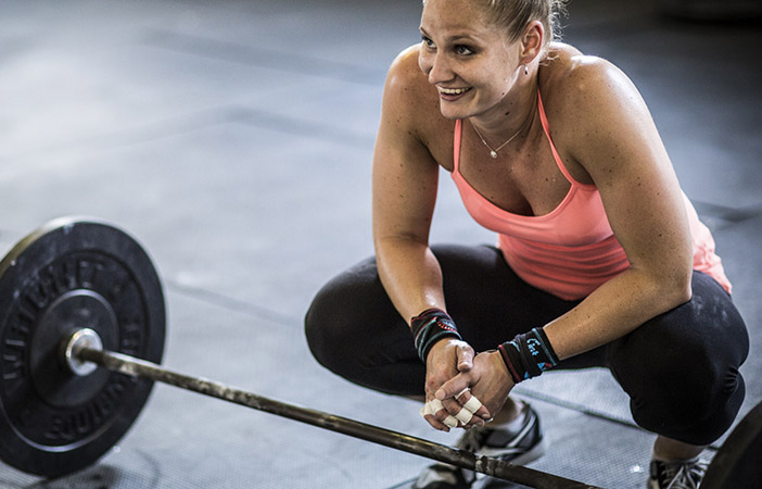 woman rest in between weightlifting sets