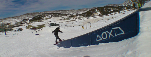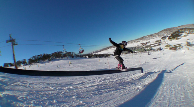 I’m in sunny Perisher, Australia! This is my third season in Perisher, but my fourth one in OZ. There has been way more snow this season, which has been great for riding powder but not so good for the park! It’s been snowing on and off for the whole of August. The park here in Perisher just gets better every year too. I remember my first season here it was pretty much just boxes (…and variations of boxes) but now they are getting a lot more creative and have some really good jibs and jumps. I guess we know a lot more people here too now so its fun to ride with a massive crew.