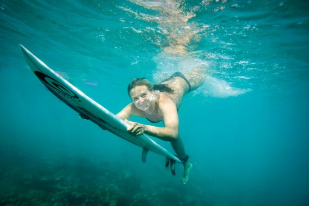 Everyday we took the Bangka, local coloured boat, to reach the different surf breaks such as Pansukian, Cloud Nine (of course!), Daco, Salvation, and Geewan Corner. Pauline was a perfect model for the local surfers, she really engaged on her take off and caught the waves deeper and deeper. Too deep sometimes and she hurt herself on her fins when she was in a barrel at Cloud Nine. Bingo – a big deep cut and five stitches on her heel! We were a little bit worried when we arrived at the hospital, as it was still early in the morning and there wasn’t any doctors in yet. At that time, I became the personal photographer of Pauline who wanted some memories of her cut. Yuk!