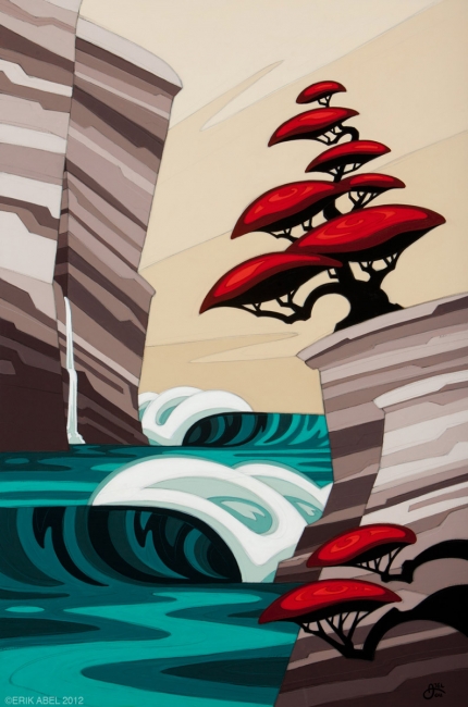 When we interviewed the awesome Devon-based surf artist Susan Claire we asked her which artists inspired her and she mentioned Erik Abel. We hadn’t heard of him but when we checked out his stuff we were fully in agreement. Erik, who hails from Ventura, California (a rad ass place to live if ever we heard it) was kind enough to let us share some of his pieces for your viewing pleasure: