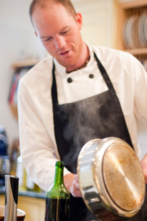 As a fish-eating vegetarian amongst a group of six hardened carnivores, I feared I might be in for the short end of the ski pole. Not so. Chef gently catered to my whims whipping up starter delights such as smoked mackerel pate, heavenly salmon-teriyaki canapés, chili oysters, pea and cream pastry puffs, and the perfect tomato gazpacho.