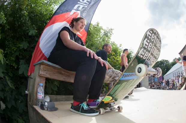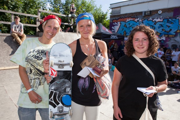 17-year-old Charlotte Thatcher rolled around the course with confidence, landing a nice pop shuv on the driveway. Caitlin Mawhood got a clean boardslide and a 180 off the platform but it was Liverpudlian Aimy Brady (or Bradley as she may forever be known thanks to a slight slip of the tongue from MC Joff Talbot) who as they say, stole the show. She landed consistent blunt pull-ins on the 6 footer, a backside flip on the bank and a flip up the step up.