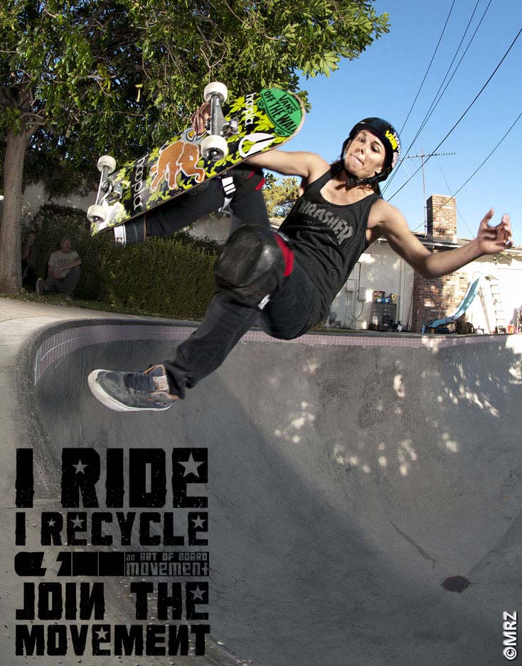 Adding another good cause on to her CV, as well as being a legendary skater and pioneer of the women’s scene, Mimi Knoop is also the creative director of ‘I Ride, I Recycle’. The first ever skateboard deck recycling movement that aims to put broken decks to good use, we love to see our old boards turned into something new, so here she tells us more…