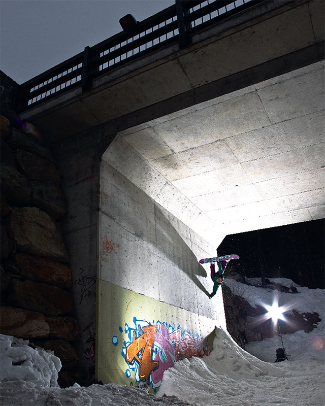 I guess I never thought much about going off jumps or building stuff to hit though and then one day I was snowboarding, and I’d done gymnastics before, and I hucked a backflip and I got so stoked at that moment, on trying crazy things, that’s when I like fell in love in snowboarding.