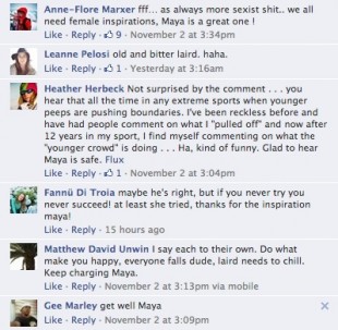 Pro snowboarders even weighed in with Anne Flore Marxer saying: “ffff…as always more sexist shit…” and Leanne Pelosi saying: “old and bitter Laird”