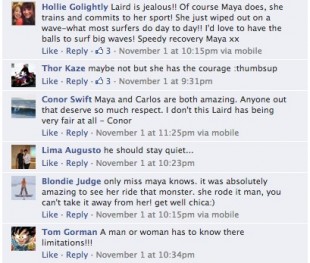 UPDATE! The awesomeness that is Maya Gabeira has responded to our piece (below) on her facebook with these totally classy, professional and fully inspiring words: