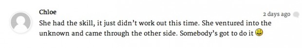 We especially liked this totally non-gendered comment on the site from Chloe: “She ventured into the unknown and came through the other side. Somebody’s got to do it.”