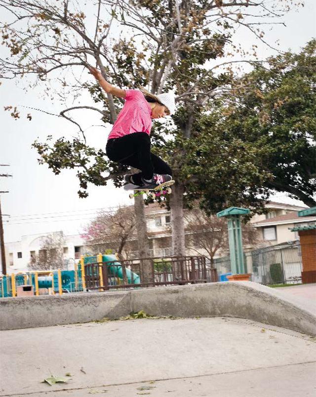 I grew up always doing boyish things like playing soccer and racing karts. I have two older sisters and a brother and when I was about ten I saw the boys on my street skating and I wanted to skate too. My grandmother Maria bought my first skateboard and I started skating with the boys, but my Dad got really mad and cut it in half. The next day I set up a new board and when he saw that he was like, “I’m giving up, I can’t do anything about it.” But he didn’t like it because it meant I was hanging out with boys all the time.