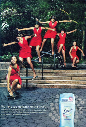 Tell us about the Secret deodorant ad when you’re doing a boardslide in a red dress.