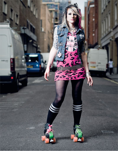 None of us know how Rollerderby will develop, as it’s so new to the country. We’ve come so far in three years and we don’t know what’s going to happen next. It’s really exciting to be involved with something at this stage of growth. People pick up on Rollerderby all over the place now and want to get involved. Jewellers Tatty Devine now sponsor us and have made us our own London Rollergirl necklaces this year. The whole thing so far has been totally grassroots – and it’s only the dedication of a lot of cool girls that has got us and the sport where we are today.
