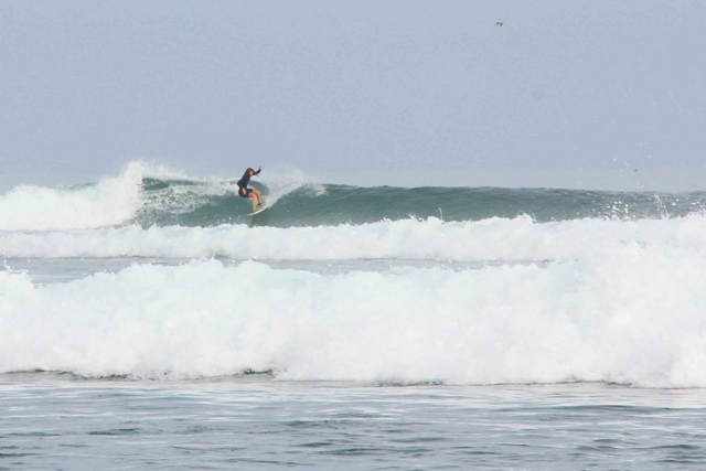 A quick ride by moto-taxi later, concluded by the drivers’ prophecy: “Sí, hay olas”: the waves are good (!!!)… and here I am, facing the sea and frothing in front of this beautiful tubular forever peeling left. The surf is small but so fantastically clean and perfect that suddenly the millions of hours spent in buses, planes, taxis and moto-taxis to get there are forgotten in a blink: