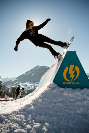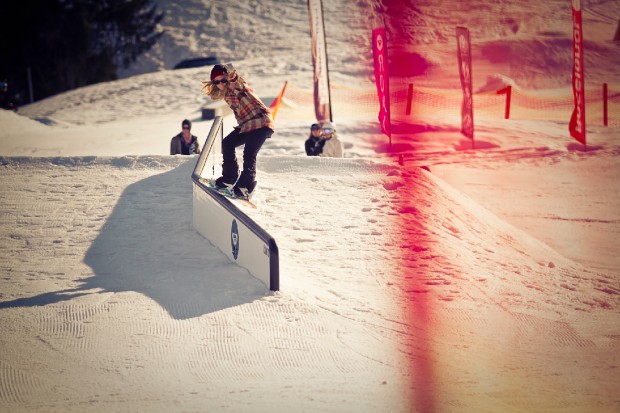 I think it all pretty much started with the Peepshow from America, that was something new in the snowboard scene. A way to be something, be someone and get sponsored without riding the big competitions. I think it’s a really good thing because not every girl can handle this kind of pressure so I think filming, being with your friends and a crew is almost more important than just doing contests. I think jam sessions are really good as well as the other girls you are riding with are not in a competition with you and so they are really stoked if you do a super cool trick. They get inspired and want do it too, instead of being competitive. The guy’s scene is so much bigger and of course there are girls in guys’ crews as well, but never together, one girl goes riding with those guys and another one with some others. So one of the main aims of this event here was also to bring the girls together, so they know each other. Last year I didn’t know JJ and Gina Somani and the rest of them, I mean I knew who they were but I din’t know them. But since last year we became really good friends and go riding together and stuff. This year some girls even came from Sweden, I didn’t know them before but now they’re here, we’re riding together, it’s so much fun and also good for the connections – maybe one day you wanna go to Sweden and now you have people you know there! So nice!