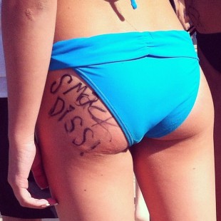 Regardless of the why these actions did have actual consequences such as guys thinking that because the girls were in bikinis with sexy slogans written in sexy places it was ok to grab a piece of their ass as shown in this Ed Templeton pic below or slap it. Which it of course wasn’t and isn’t. Ever.