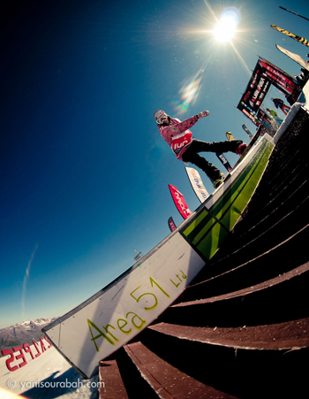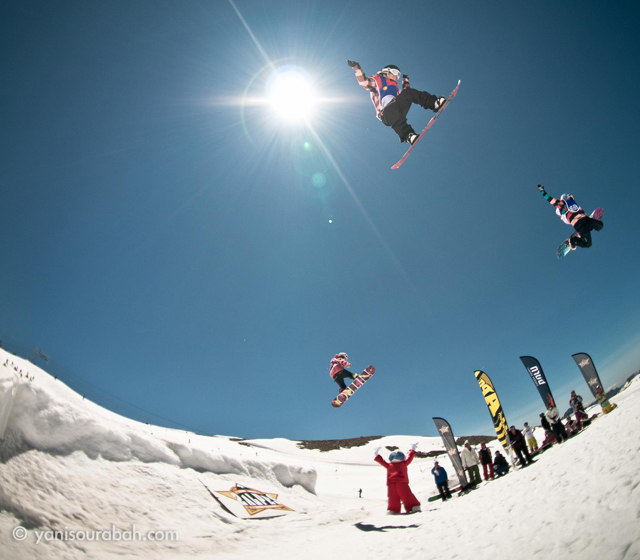 “As with previous years, the Kumi Yama contest took place in Les Deux Alpes at the beginning of July. The format of it is really fun and original; a bunch of skiers and snowboarders, pros and amateurs, mature riders and kids from everywhere take part in this international event. There’s only one rule: you must be in a team of three and stay grouped as much as you can when you ride on the Japanese / video game themed snowpark.