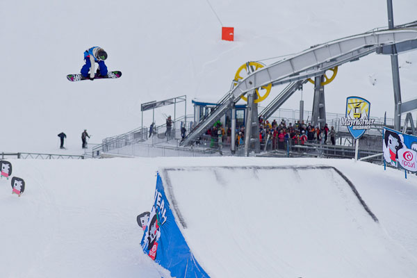 In the end it was Silje Norendal whose frontside lipslide to fakie, switch 50-50 to switch frontboard, switch back 180 indy grab, and front rodeo 540 impressed the judges the most. The young Norwegian, who stomped all four of her runs, was super stoked: “I think it’s really important to have a girls event like this. Have lots of girls together and just ride and have fun.” Local shred sista Tini Gruber came in a close second with her huge and smooth backside 540s and perfect frontside 360s, just like last year. And third was Swiss up and coming talent Elena Könz, who stoked out the crowd with a the classic backflip and solid frontide 540s.