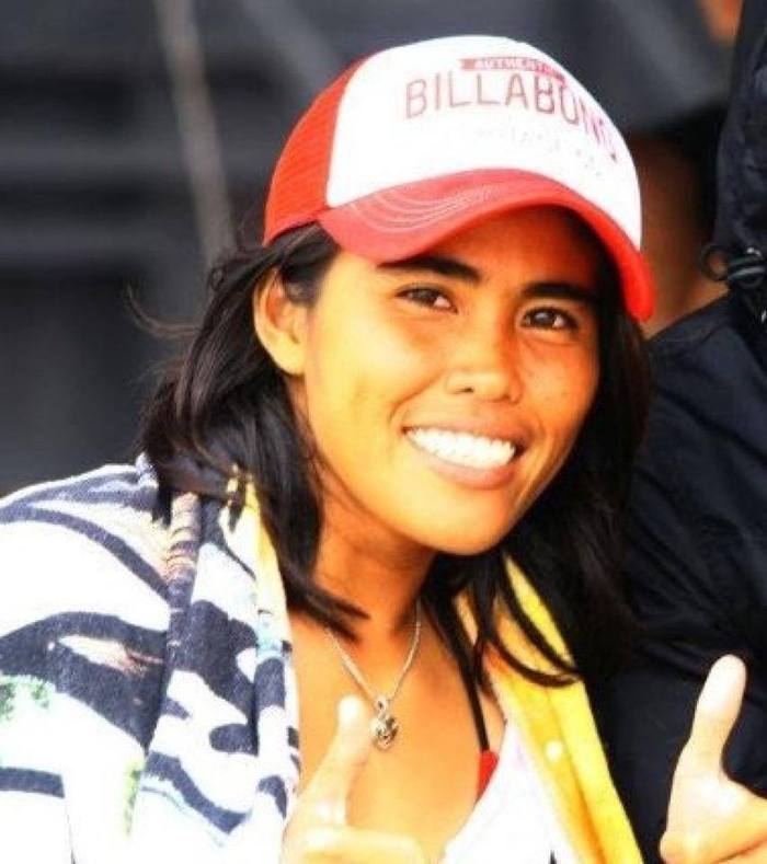 It all started when I was surfing one day with a Billabong rash shirt on and one of the photographers here in Bali took a photo of me. Then my friend went to talk to Magic Wave magazine and told them that there’s a girl from Nias that surfs very good. Back then there weren’t many girls surfing. So they called me in for an interview just for a small article to go with that photo in the magazine. So then Billabong read that article and straight away searched for me, and I met up with their team and they gave me some clothing to thank me for wearing a Billabong shirt in the photo.