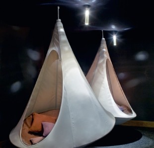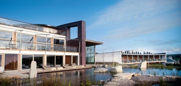 The eco-friendly spa at the Scarlet Hotel is warm and welcoming and quite different from the white pharmacy-style aesthetic you find in most modern hotels. The relaxation rooms are bright and airy and boast floor-toceiling views of the bay, as do the outdoor wood-heated hot tubs and seaweed baths, and indoor and outdoor pools, which are heated by solar panels. The treatment rooms are dark and comforting with hanging tents that sway gently as if to join in with helping you relax.