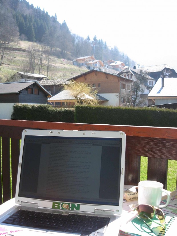 One winter season turned into two. The next year we lived in a tiny studio apartment, and I worked part-time in a girls’ snowboard shop. In the evenings, and on my brilliantly French 2-hour lunch breaks, I’d write. Towards spring I often worked on our balcony, fuelled by almond croissants, and strong French coffee. I experimented with short stories, snippets of poetry, and played around with novel ideas. It was my ‘adventure in writing’ and by the time I returned to the UK in May 2007, I knew the book I wanted to write.