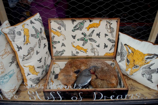 I love drawing and making. I’ve normally got a project on the go which involves designing repeat patterns to screen print. I end up making dresses, cushions, chairs and all sorts. I’ve worked closely with an ethical taxidermist who only uses animals who have died naturally. We share the same appreciation of animals and have done some pretty unusual projects together. Jazmines animals are brilliant as I get to draw them up close and use the illustrations as part of my designs.