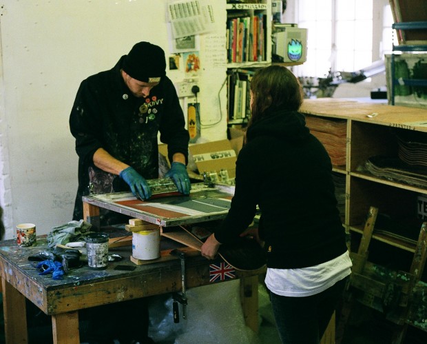 Initially I started off purely printing, all day everyday. After about 2 years we employed another screen printer to take on the increasing work load. So gradually my role has now morphed into more ‘studio coordinator’ where I book in the jobs we print for other companies, deal with clients, get artwork ready to be exposed onto screen and generally help to organise the work load and future projects and trips.
