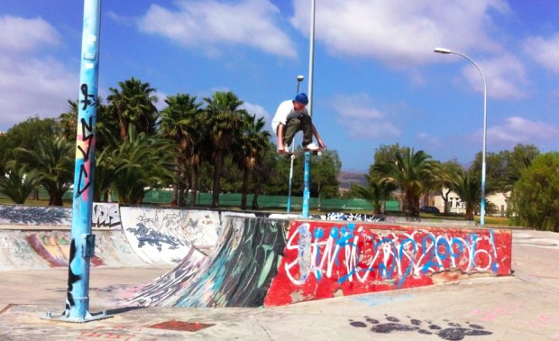 What can I say… I love the hangtime! Cannonball for the moshers performed by me at Maspalomas skatepark.