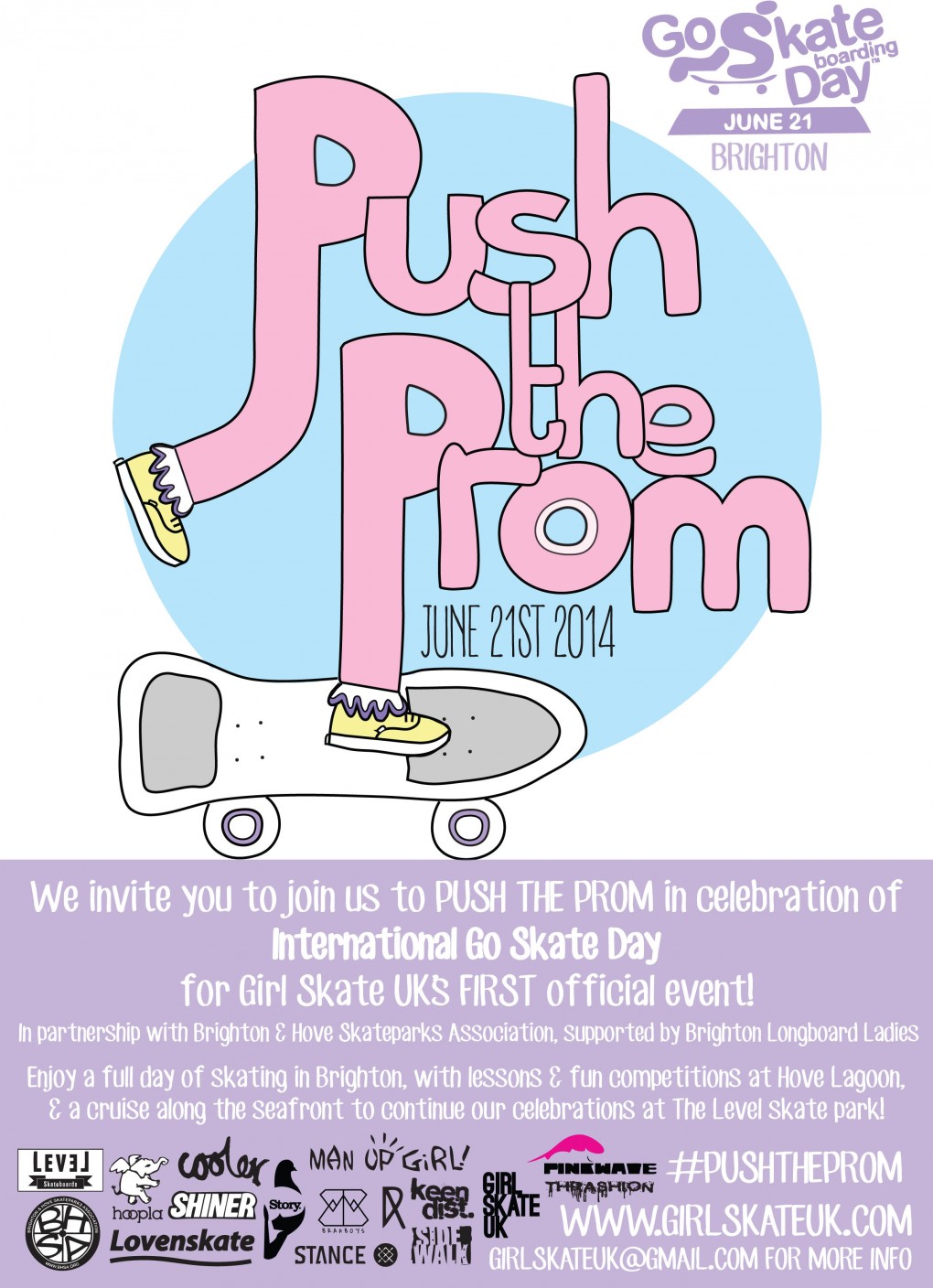 Why? Combine the skate brains of Lucy Adams and Danni Gallacher (Girl Skate UK founder) and you have an event you CAN NOT MISS! To celebrate Go Skate Day, they invite you to come ‘Push the Prom’. Starting with lessons, followed by a competitions, followed by a mass push along the prom (watch up pedestrians!). Lessons are girl only, but the rest is open to all. That’s our Go Skate Day sorted..