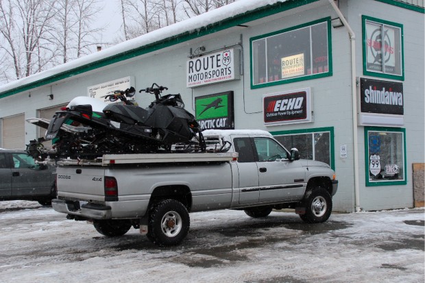 Route99 Motorsports in Pemberton, BC, is our local Arctic Cat Dealer. We spend lots of time and money here. In this picture I am just picking up my brand-new snowmobile – a 2013 M8! 160 Horsepower Baby!