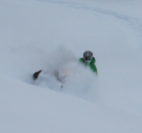 Because it was just me and Nadia that day and the snow was so deep that it was hard to double with two people on one sled, I found a spot where I could ghost-ride my sled. I would ride to the top, then stop, grab my board, and give the sled a push to roll down the hill. I’d then traverse over into the section seen on the previous pic, and ride back to my snowmobile. I think I did about 5 or 6 laps that way…