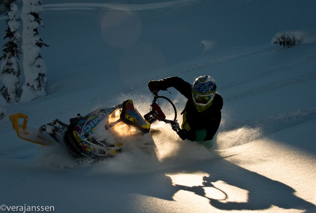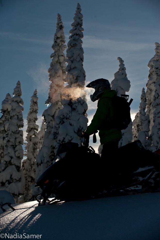 Nadia Samer is among the world’s best female big mountain snowmobilers (and skiers for that matter). She’s got a mean pow turn and is always down to shoot. We’ve had some super sick days shooting each other and playing around with camera settings and lighting. This is maybe one of my favorite photos I’ve ever taken!