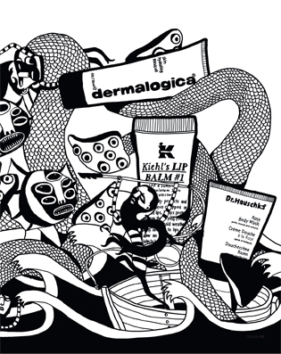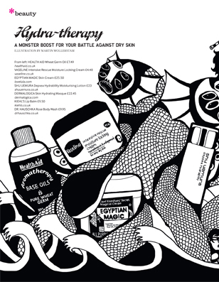 from left to right: HEALTH AID Wheat Germ Oil, ASELINE Intensive Rescue Moisture Locking Cream, EGYPTIAN MAGIC Skin Cream, SHU UEMURA Depsea Hydrability Moisturizing Lotion, DERMALOGICA Skin Hydrating Masque, KIEHL’S Lip Balm, DR. HAUSCHKA Rose Body Wash