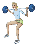 How to do it: Start with a light weight, lift the bar overhead and rest it on your shoulders. Stand tall with your feet just wider than shoulder-width. Lower your butt out behind you until your thighs are parallel (or nearly parallel) with the floor, and come back to standing, keeping your weight through your heels, not your toes, throughout the movement. Do two sets of 15 repetitions with a 30-second rest in between. Perform three times a week.