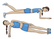 How to do it: Lie face down and rest on your forearms and toes. Pull your belly in towards your spine and, keeping a straight line from your shoulders to your ankles, raise yourself up so only your forearms and toes are resting on the floor. Keeping your tummy tucked in and your hips in alignment, raise one foot from the floor. Use your corset muscles to maintain the hold for 30 seconds, or one minute if you’re strong enough. To make the exercise easier, keep both feet on the floor and hold.