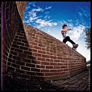 Evelien Bouilliart is poised to drop off a two and a half metre wall on her skateboard. We’re in Kennington, South London for the cover shoot and the watching entourage, including the photographer, stylist, fellow pro skater Maria Falbo, and some passing Mums and drug dealers, draws a collective deep breath before urging her not to do it. “Come on, why not?” she says in her American-English twang, with a big grin. She has a busted wrist, not long out of a cast, which she cut off herself, and a recently turned ankle. And with a summer of big European comps, not to mention the X Games, on the horizon, we know her sponsors will kill us if she hurts herself again.