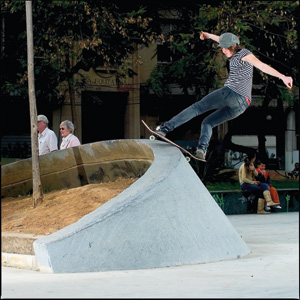 Getting more girls into skating is super-important to Evelien, and her passion for the cause is written all over her face. She’s got no time for girls who hang out at skate parks just to attract guys or because their boyfriend skates. But she’ll always help out the ones who just go for it, and gets a good buzz from coaching at camps such as the Element and etnies camps in the summer. She believes the standard of girls skating is improving all the time, such as the 12 year-old Brazilian Karen Feliosa who was at the last X Games, and thinks in years to come the younger girls will be way better than she is now.