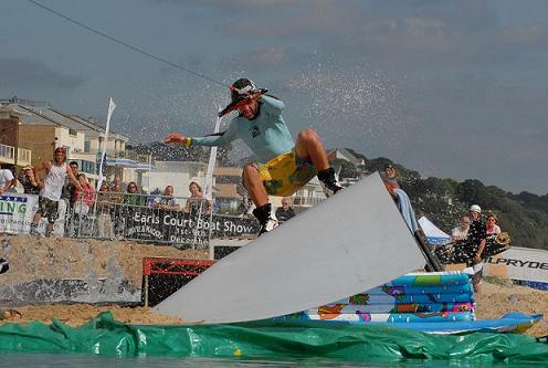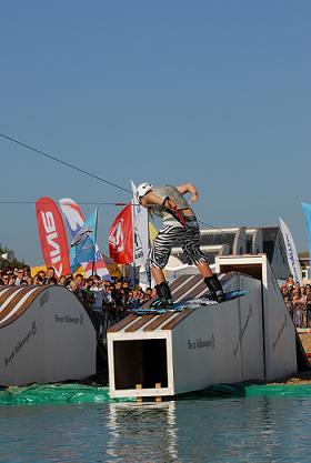 As I was wakeboarding at the event, I spent most of the weekend at the pool gap. Basically 3 pools built into the beach, with 2 sets of rails connecting them. The idea being to ride from the top pool, over one of the first rails, into the second pool, onto another rail, and then hopefully land in one piece in the bottom pool. Oh and I forgot to explain, it works because you have a winch towing you!