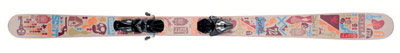 This is the women’s version of the Punisher, replaced with a lighter wood core which gives easier control. With similar geometry to the Aurora, the Sheela has a twin tip, which is traditionally good for park tricks, but as it has a slightly longer tip it also gives good ‘float’ in off piste powder. Graphics have good chairlift appeal. Definitely worth the money.