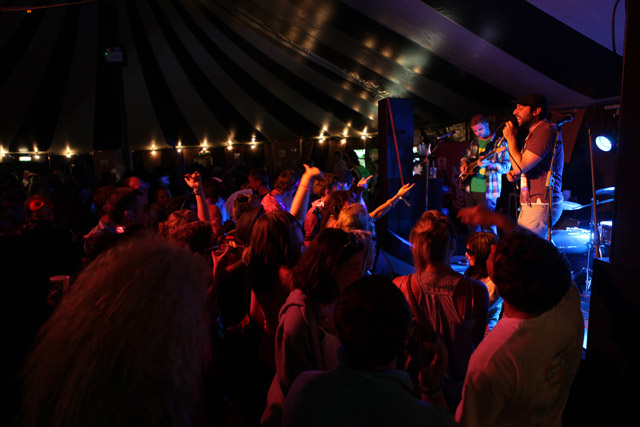 A new day arrives and everybody hauls themselves arse out of tent to be met with the sun beating down on yet another perfect costal day. The snaking crowd pads its way through the heart of the main arena until it reaches the dusty path to the beach. As toes spread apart and disappear the sound of a ukulele fills in air from the beach stage.