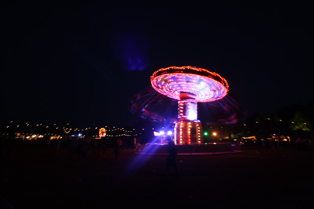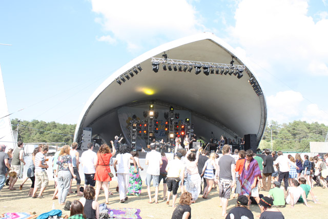 Venturing into Merlin’s Forest at night was risky, sure, but it paid off. A pure battering as the smallest bones in the body are shaken by bassline after filthy bassline from Toddla T and Trigganom, followed by hours of tightly wound electro from Fake Blood and into the eagerly anticipated headline slot from 2 many DJs – a set which, unusually, did not comprise of the usual top-self sample after sample style mash up and instead, with just one Dewaele brother at the helm opted for an altogether more spacious set of electro padding featuring snippets including Human League and The Gossip.